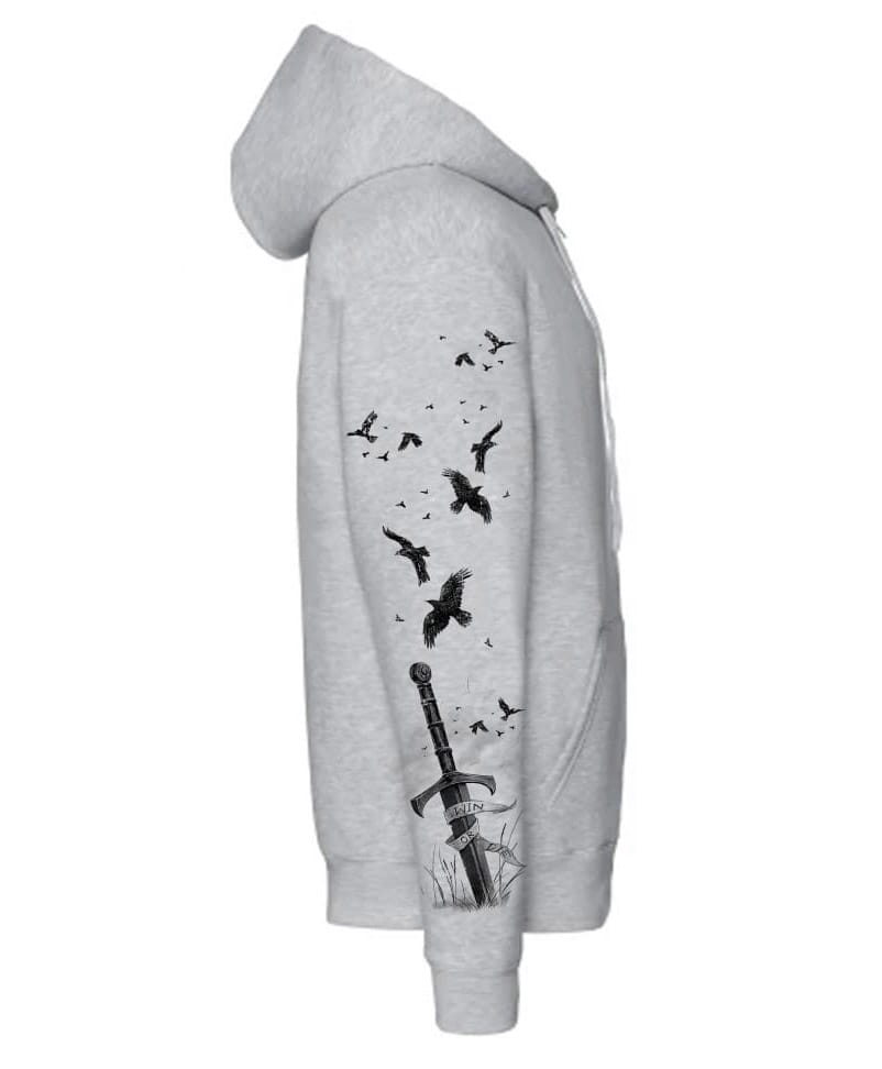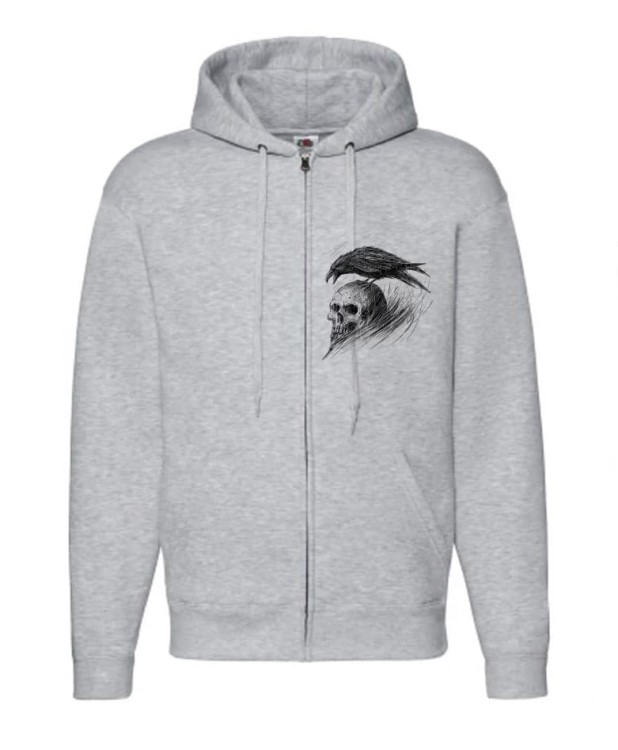 Materiał : 100% bawełna. Kolor : szary. Bluza wykonana z grubego materiału - idealna na zimniejsze dni. Zapinana na zamek. Z przodu bluzy znajdują się dwie kieszenie typu kangur. Rękawy i dolna krawędź wykończone ściągaczem. Nadruk wykonany metodą sitodruku, techniką ALL PRINT - z przodu oraz z tyłu bluzy a także na rękawie. Całość daje rewelacyjny efekt wizualny!!!