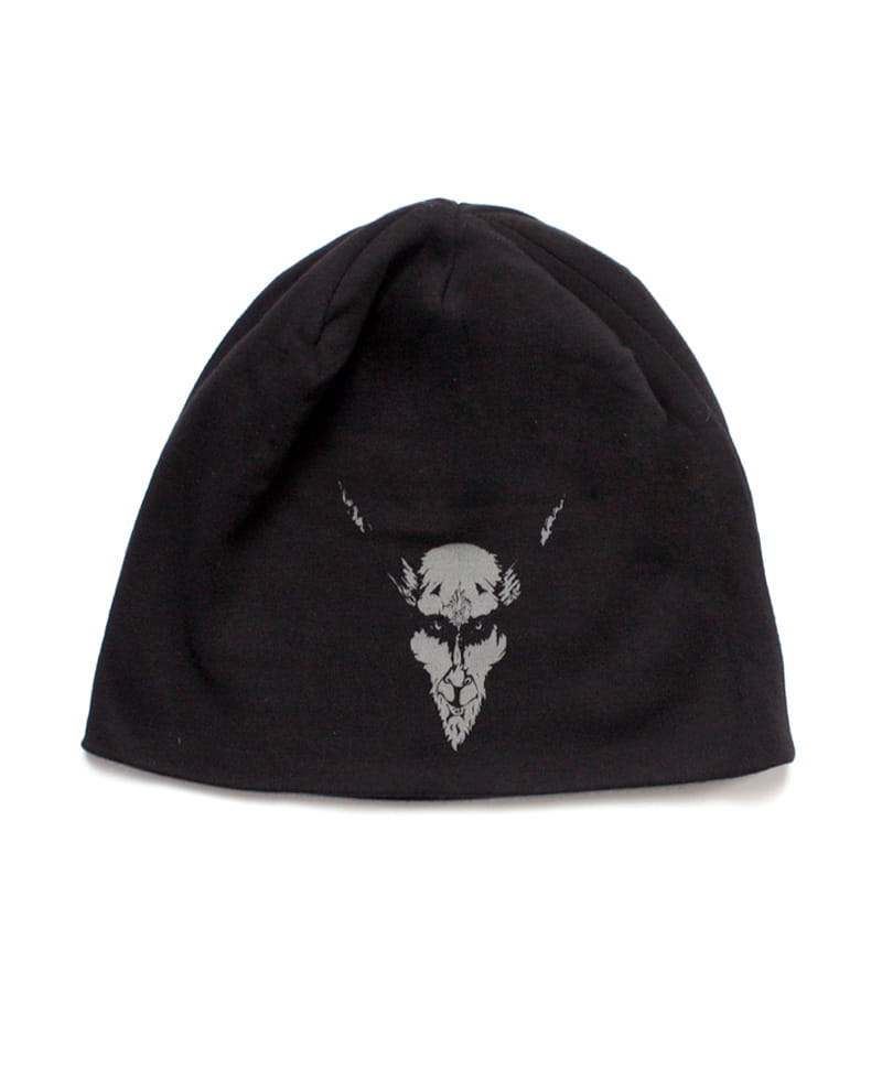 Materiał : 100% bawełna. Kolor : czarny. Nadruk metodą sitodruku z obydwu stron czapki. Czapka ozdobna - wykonana z dużo materiału niż standardowe czapki zimowe.