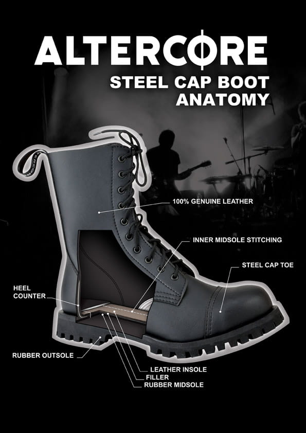 Wysoka jakość i wygoda użytkowania sprawi, że glany ALTERCORE, posłużą jego Właścicielowi przez długi czas! Obuwie jest bardzo trwałe. Wykonane ze skóry licowej z metalowym podnoskiem. Podeszwa klejona.