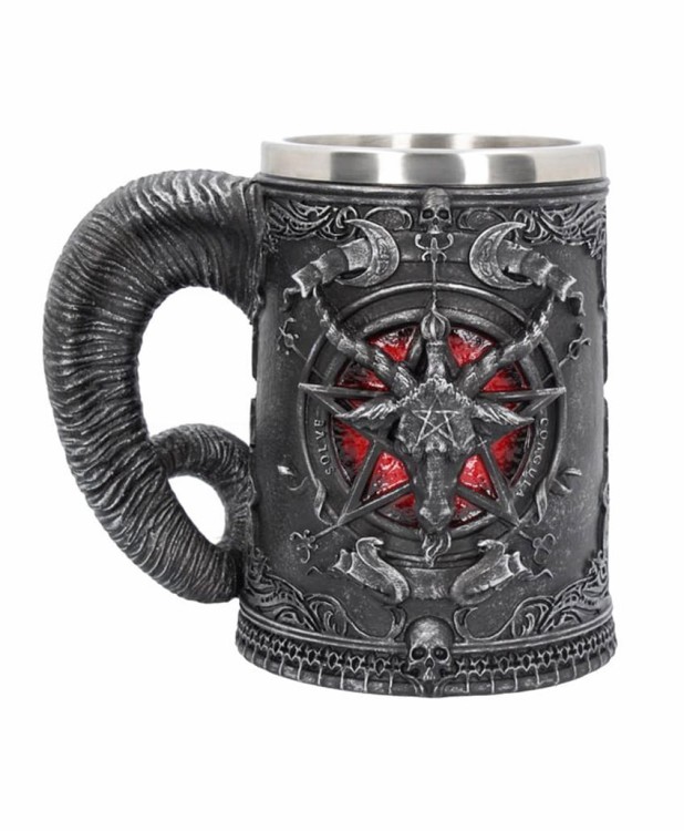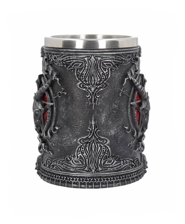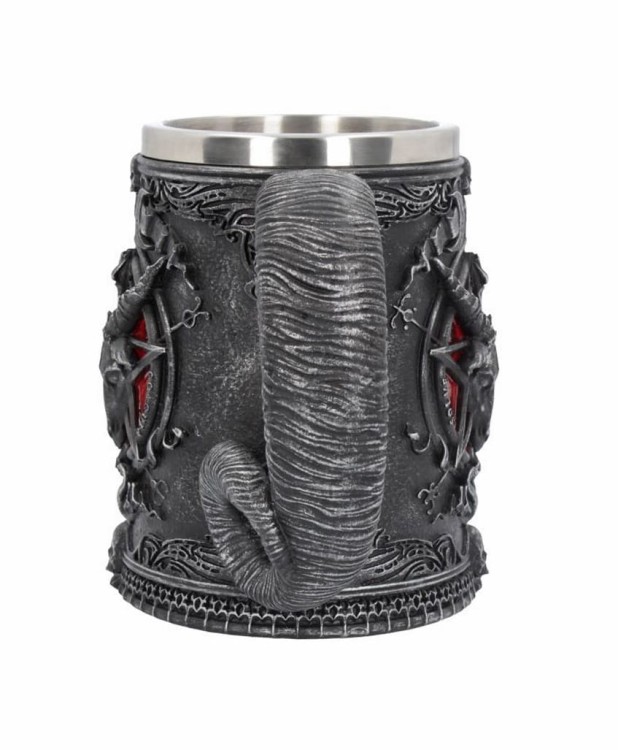 Materiał : żywica i stal nierdzewna. Rewelacyjny kufel z wyjątkowo szczegółowym, ręcznie malowanym zdobieniem. Wewnętrzną część kufla wykonaną ze stali nierdzewnej można wyciągnąć.