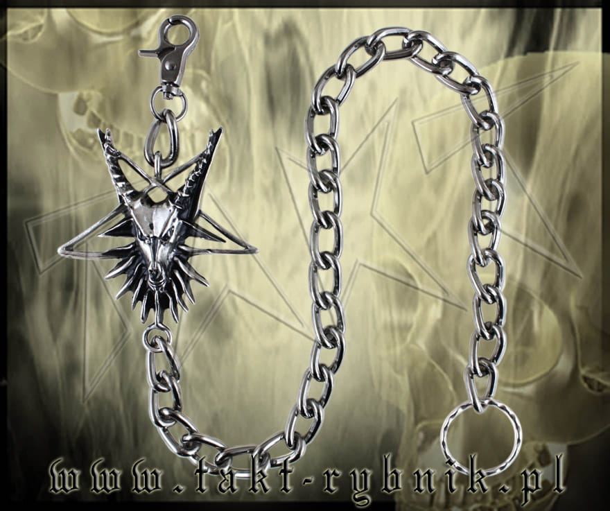 Łańcuch metalowy zdobiony dużym odlewem w kształcie pentagramu z głową kozła. Zamykany na karabinek. Łańcuch w kolorze ciemnego srebra.