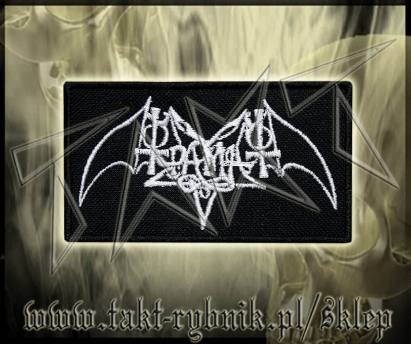 Naszywka haftowana. Haft biały. Brzegi naszywki obszyte.
