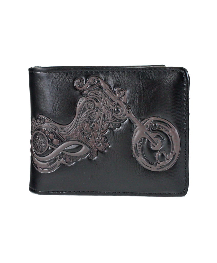 Portfel wykonany ze skóry ekologicznej. Zdobiony nadrukiem oraz tłoczeniami z przodu portfela.