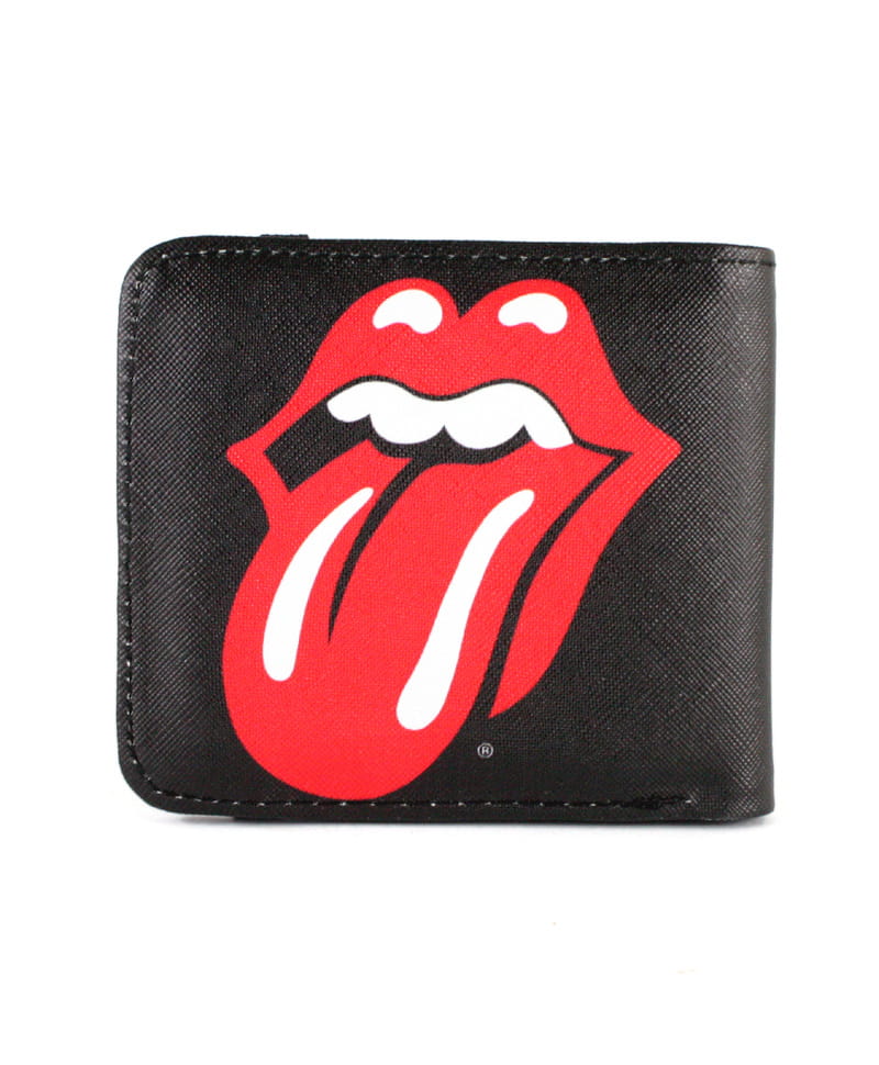 Portfel THE ROLLING STONES. Wykonany ze skóry ekologicznej, obszyty białymi nićmi. Zdobiony na całej zewnętrznej powierzchni nadrukiem. W środku posiada przegródki na dokumenty oraz karty płatnicze a także zapinaną na zamek kieszonkę. Portfel zamykany na gumkę.