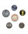 Komplet 6 szt przypinek o różnych wielkościach (średnica min ok. 2,5 cm , max ok. 3 cm). Przypinki posiadają zapięcie z plastikowym wkładem. Zapakowane na oryginalnym kartoniku.