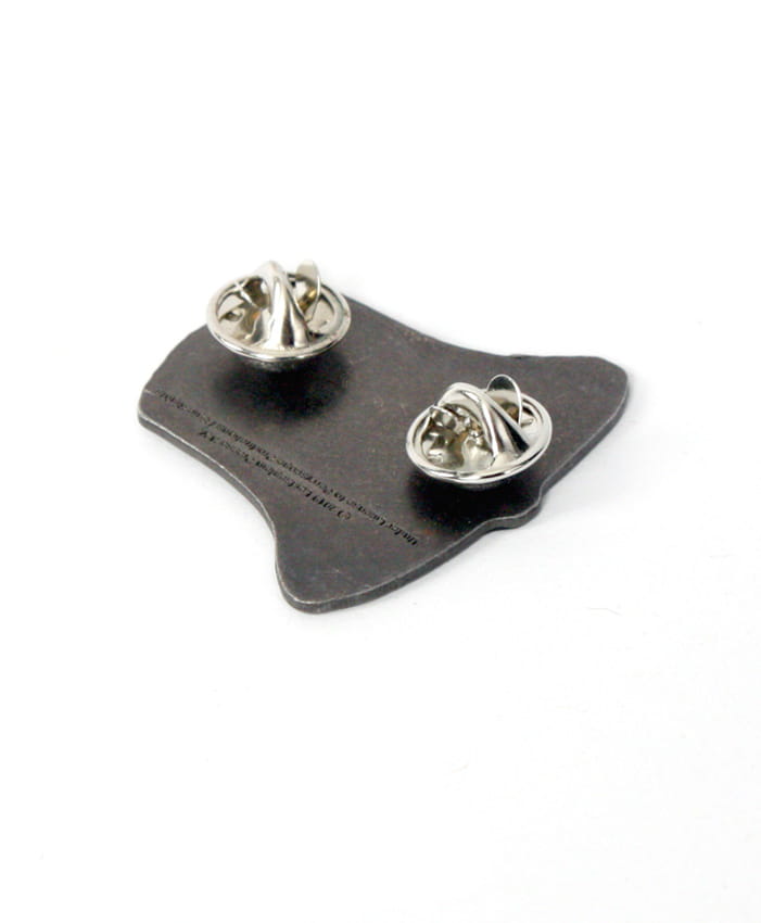 Przypinka metalowa. Mocowana poprzez przebicie materiału i założenie zabezpieczenia.
