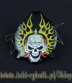 Przypinka metalowa kolorowa lakierowana. Mocowana poprzez przebicie materiału i założenie zabezpieczenia.