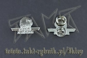Przypinka metalowa, lakierowana. Mocowana poprzez przebicie materiału i założenie zabezpieczenia.