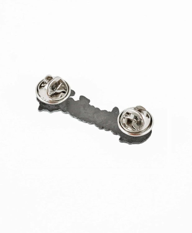 Przypinka metalowa. Mocowana poprzez przebicie materiału i założenie zabezpieczenia.