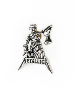 Przypinka metalowa. Mocowana poprzez przebicie materiału i założenie zabezpieczenia.