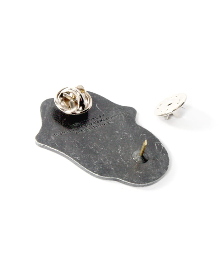 Przypinka metalowa, lakierowana. Mocowana poprzez przebicie materiału i założenie zabezpieczenia.