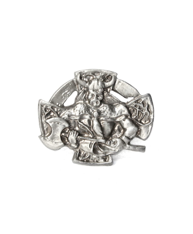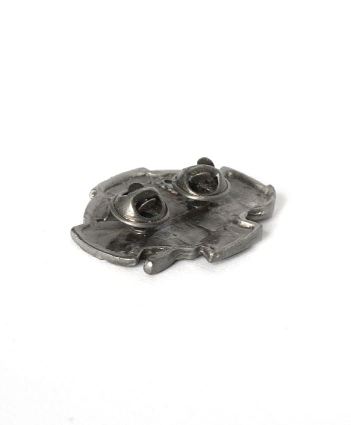 Przypinka metalowa, lakierowana. Mocowana poprzez przebicie podwójne materiału i założenie zabezpieczenia.