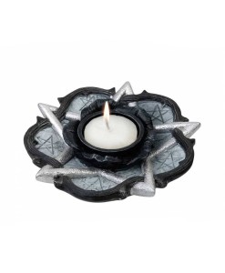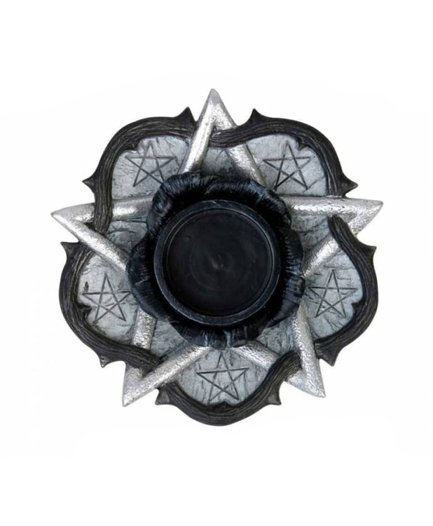 Materiał : żywica polimerowa. Niezwykle efektowny świecznik w kształcie róży z pentagramem.