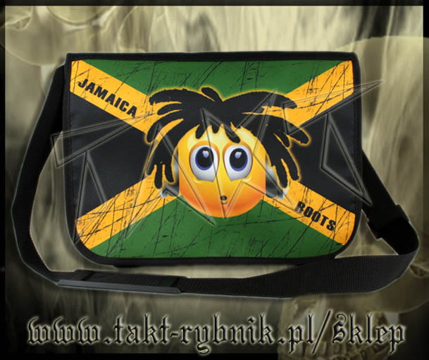 Torba na laptopa SMILE JAMAICA ROOTS. Wykonana z mocnego materiału w kolorze czarnym. Zapinana na dwa plastikowe zatrzaski. Posiada dwie dodatkowe kieszenie zapinane na zamek (jedną w środku torby i jedną widoczną na drugim zdjęciu). Tylna część torby posiada dodatkowo wszytą gąbkę dzięki czemu torba nadaje się do noszenia mniejszych laptopów i netbooków. Dołączony szeroki pasek posiada możliwość regulacji.